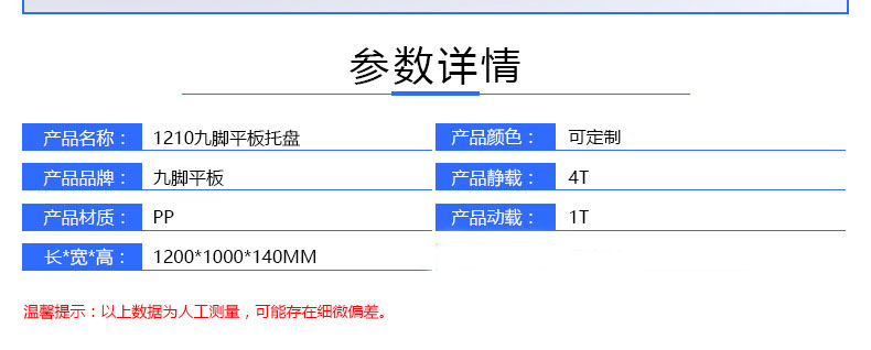 當(dāng)前位置:首頁 -> 產(chǎn)品中心 -> 九腳塑料托盤系列 -> 九腳平板| 九腳平板1210塑料托盤 |