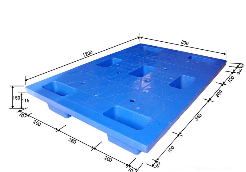 塑料托盤主要材質:高密度低壓聚乙烯(HDPE)或者聚丙烯(PP)。 塑料托盤尺寸單位:mm,以藍色為主,其它顏色亦可。 塑料托盤適合叉車:機械/電動叉車、手動液壓托盤搬運車使用。 塑料托盤使用方式:四面進叉,適合平地、堆垛、貨架、叉車周轉貨物使用。 塑料托盤適應溫度:-25℃~+50℃(盡量避免陽光曝曬及靠近熱源)。