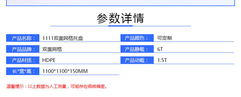 雙面網(wǎng)格托盤主要材質(zhì):高密度低壓聚乙烯(HDPE)或者聚丙烯(PP)。 24小時服務(wù)電話:15505410086 |