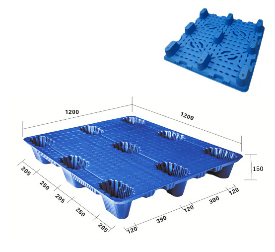 九腳吹塑托盤特點: 1、吹塑一體成型,隔墻離地存放時不會潮濕,方便清洗,不給微生物和其他蟲害提供滋生的溫床,更適合食品、醫(yī)藥、煙草、化工等要求嚴格的行業(yè),為您的嚴格把控提供方便。 2、采用高分子量高密度聚乙烯(HMWHDPE)作為原料,優(yōu)于普通低壓聚乙烯(HDPE)。 3、吹塑托盤優(yōu)勢表面光滑平整無毛刺,邊角為弧度角,不會刮傷或磕碰您的產(chǎn)品,讓您使用更安心。 4、吹塑產(chǎn)品不易破裂情況,無料屑、粉粒和雜質(zhì),為您的產(chǎn)品安全保駕護航。 5、載重大:動載1-1.5t,靜載2-4t,是原來普通塑料托盤的數(shù)倍,九腳套疊,存放方便。 吹塑托盤的優(yōu)勢: 1、吹塑托盤承載大,動載達到2噸以上。 2、吹塑托盤使用壽命長,正常使用壽命在8年以上。 3、吹塑托盤抗摔性能強,三米對角跌落無破損。 4、吹塑托盤質(zhì)軟,韌性好,被叉車撞擊后不會產(chǎn)生飛邊或掉塊。 5、吹塑托盤結(jié)構(gòu)設(shè)計合理,表面為凹槽設(shè)計,防滑性好,無邊角余料。 6、吹塑托盤安全性能好,不助燃、不導(dǎo)電、不產(chǎn)生靜電、無毛刺飛邊。 7、吹塑托盤化學(xué)穩(wěn)定性好,無毒無味,耐酸堿鹽的腐蝕,易于清洗消毒,不腐爛。 8、吹塑托盤環(huán)保性能好,可回收再利用。